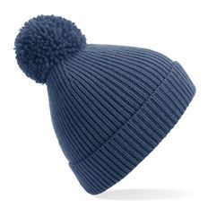 Engineered knit ribbed pom pom beanie