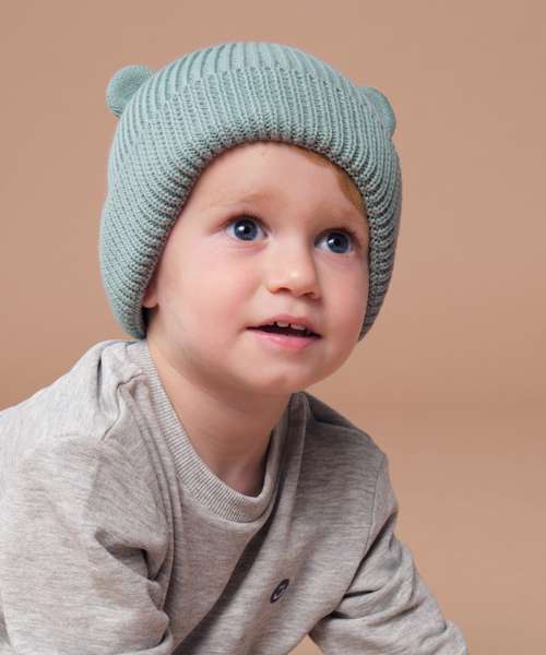 The Organic baby bear beanie combines a soft, gentle feel with a playful 3D ear detail. Made from 100% certified organic cotton, the single-layer ribbed knit is kind to delicate skin, while the engineered crown ensures a comfortable fit. A thoughtful choice for those looking for conscious and safe baby accessories with added personality.