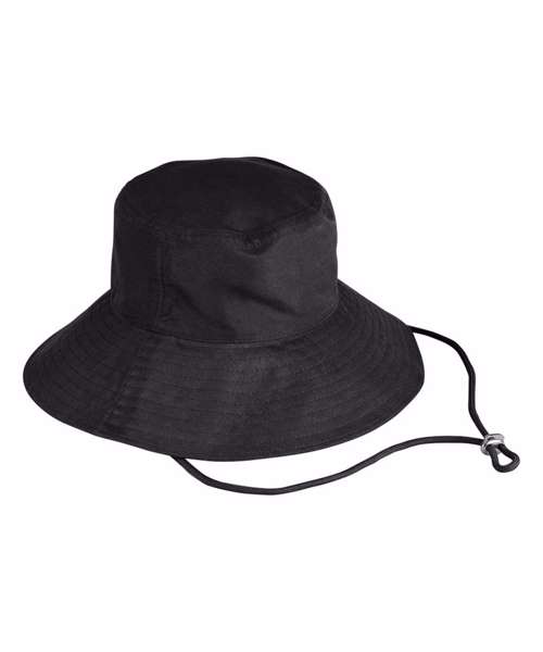 Contains 100% certified recycled nylon. Water-repellent fabric. Protection against sunlight: UPF50+. Wide-brimmed design. Adjustable chin strap. TearAway label for ease of rebranding.