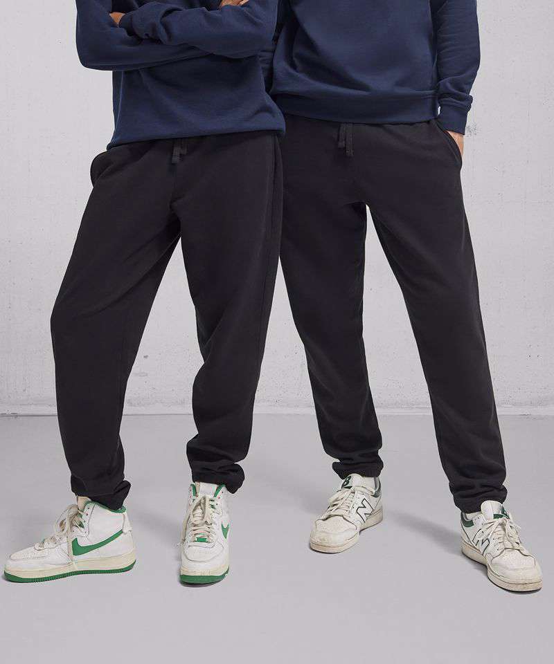 True unisex style. Classic, modern fit for everyone. 100% cotton face with excellent printability and soft hand feel. Elasticated waist with drawcord. Side pockets. Elasticated ankle cuffs. Available in best-selling colours. ‘B&C No Label’ solution for easy rebranding. Contains recycled polyester.