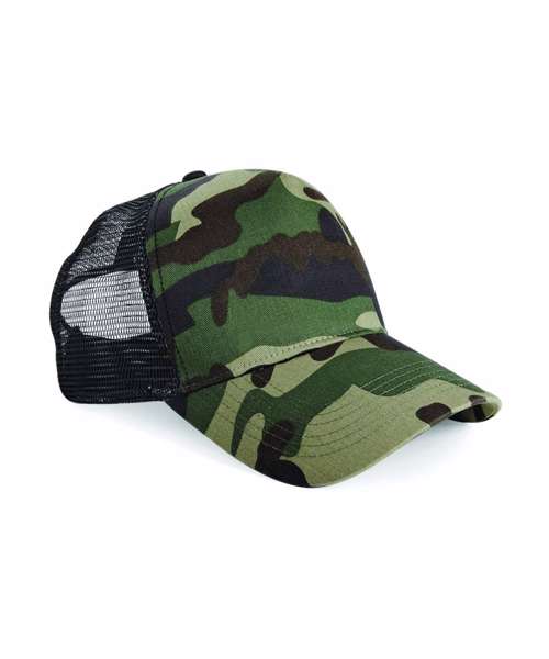 Tear away label for ease of rebranding. Retro style snapback size adjuster. Camouflage detailing. 5-panel design. Pre-curved peak.