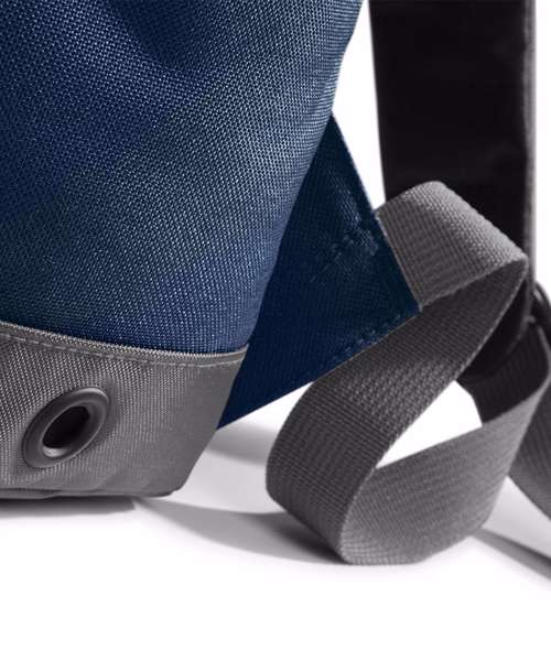 TearAway label for ease of rebranding. Water-resistant fabric. Dual compartment design. Laptop compatible up to 15.6". Padded laptop compartment. Media pocket and headphone port. Padded adjustable shoulder straps. Wet pocket. Compression straps. Padded back panel. Organiser section. Elasticated bottle loop. Metal ventilation eyelets. Grab handle.