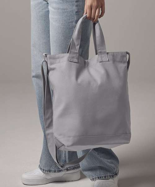 Unisex styling. Adjustable self fabric shoulder strap. Internal valuables pocket. Press stud closure. Handle length 37cm.