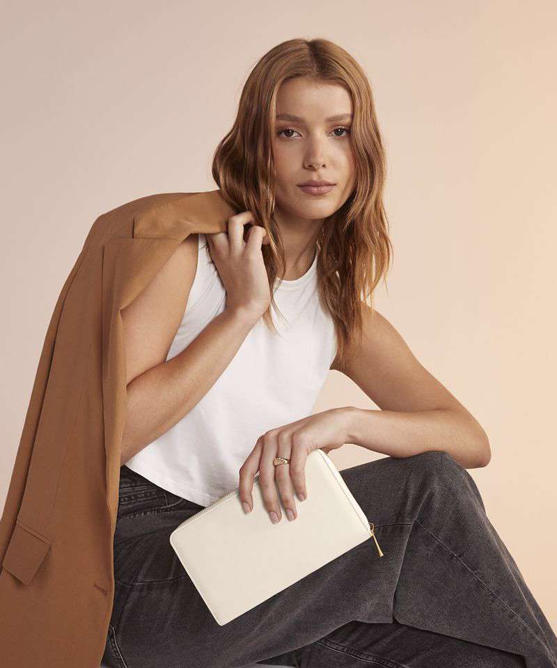 Protective velvet lining. Saffiano fine grain. Necklace compartment. Four secure necklace hooks. Detachable earring organiser. Ring holder. Two secure zip pockets. High-shine gold metal zip. Designed to store rings, earrings and necklaces.