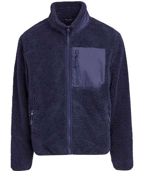 Cosy sherpa shell fabric. Warm internal fleece material. Unisex design. Functional zipped pockets. Stand-up collar. Nylon chest pocket. 30°C. Easycare.
