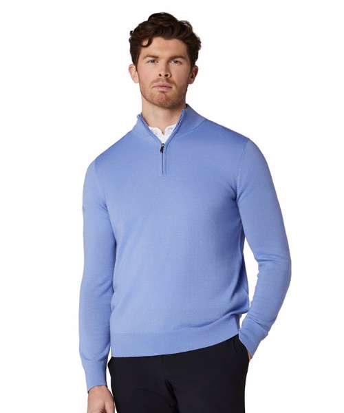 1/4-zip merino blend sweater. 1/4-zip closure. Thermal. Mock neck.