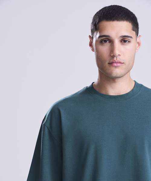 Oversized, boxy fit. Twin-needle stitching at sleeve and hem. Luxurious hand feel. Size label only, for easy rebranding. Side seams (non-tubular). Taped neck. Crew neck. Set-in sleeves.
