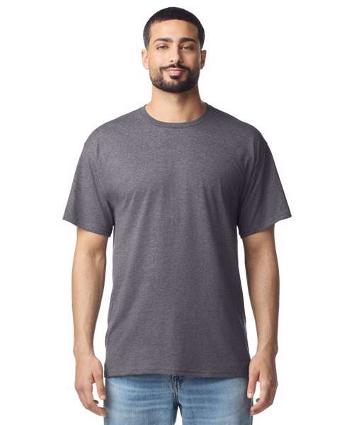 High-stitch density fabric made from 30/1 cotton. Narrow width rib collar, taped nexk and shoulders. Modern classic fit, seamless body with a TearAway label.