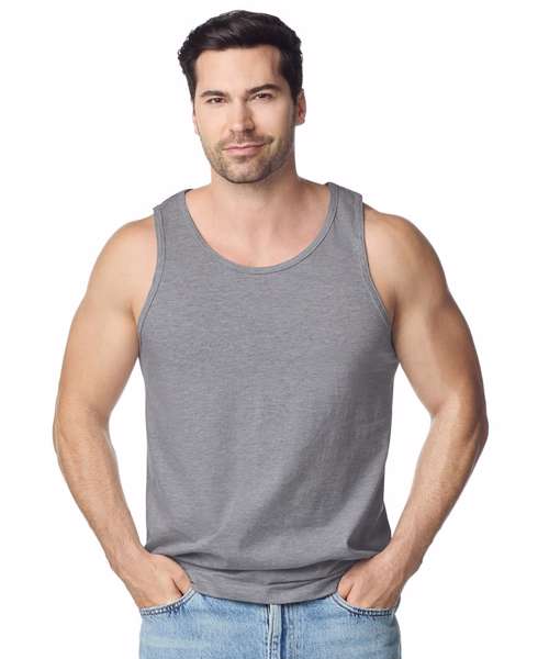 You know how you love those broken-in sneakers? The jeans you forget you’re wearing. That’s the exact sense you’ll get from this ringspun adult tank top. The trim Euro fit cut feels like it’s made expressly for you. Ultra-soft cotton yarns are ringspun for a smooth-on-skin sensation, and the fabric is pre-shrunk to keep the flattering shape.