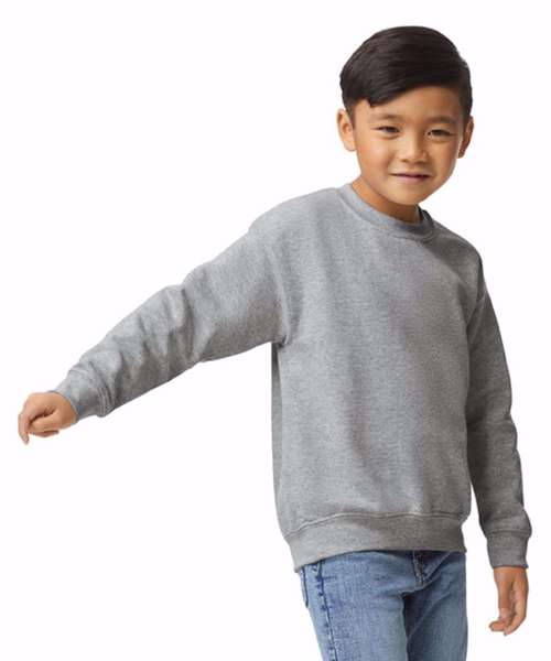 If they had their way, kids would live in sweats – especially the plush softness of this Gildan® Heavy Blend™ crewneck. It’s crafted of a lofty polyester and cotton blend using air jet yarns for a softer feel and reduced pilling. Details like sturdy reinforced shoulders and rib knit wrists and waist help this crewneck retain its shape through kids uproarious activity.