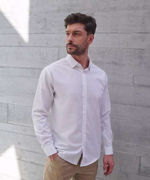 Men’s long sleeve ‘cotton-feel’ Coolplus® shirt, made from 100% Coolplus® permanent wicking fabric with cotton hand feel. Regular fit. Back yoke. Front placket with eight self-coloured pearlised buttons. Button-down collar. Adjustable cuffs. Tag-free. Wrinkle-resistant.