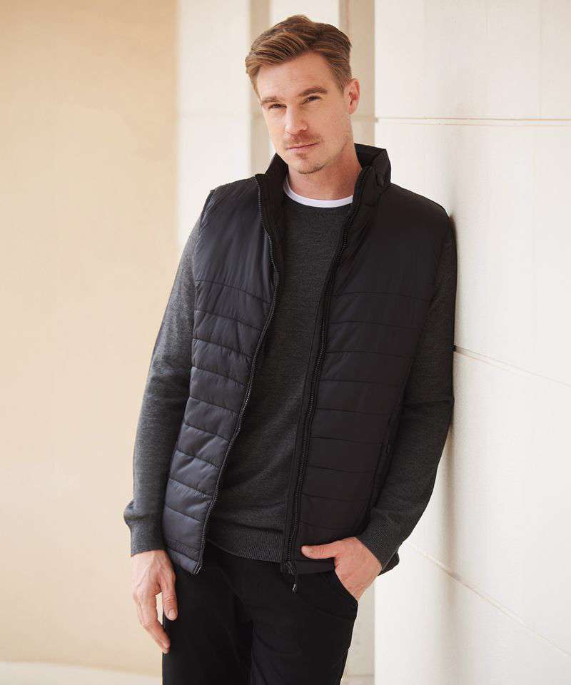 100% nylon pongee in a water-repellent fabric. Quilted polyester padding for puffer effect. Smooth area on chest and across back for decoration. Plain side panels. Full-length front zipper and 2 hidden side pocket with non slip pullers. 2 internal deep pockets. Binding on armhole. Henbury cut out label.