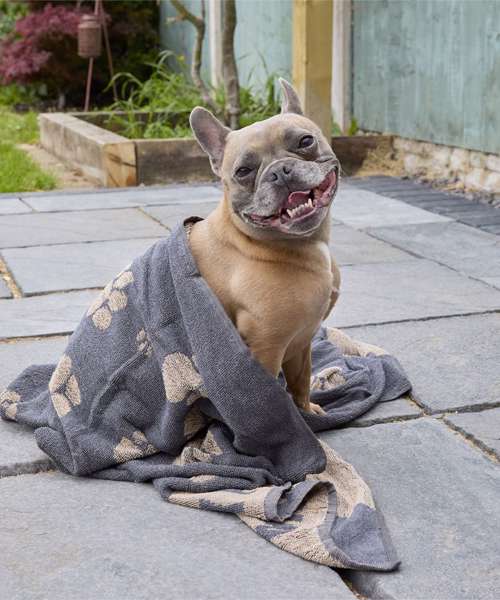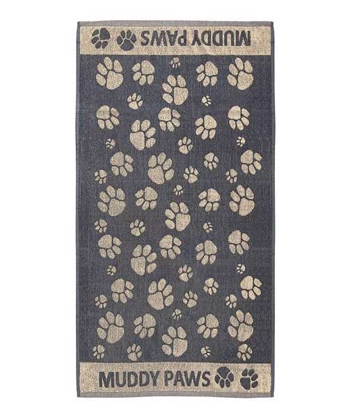 Jacquard muddy paws design dog towel. Machine washable. Jumbo size: 90 x 165cm.