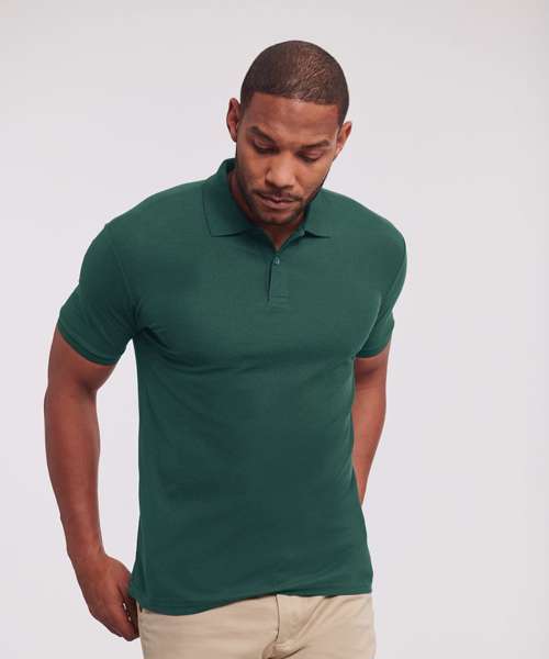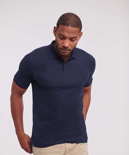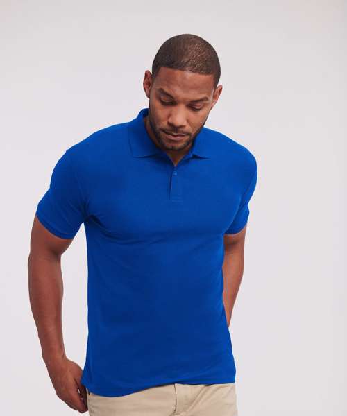 The Authentic eco polo is made from recycled polyester and cotton and is manufactured in Russell Europe’s own production facility. Thanks to more sustainable materials, extremely short European transport routes and full control over production, we have developed a polo shirt with less impact.