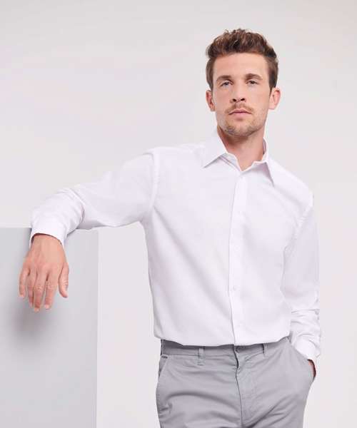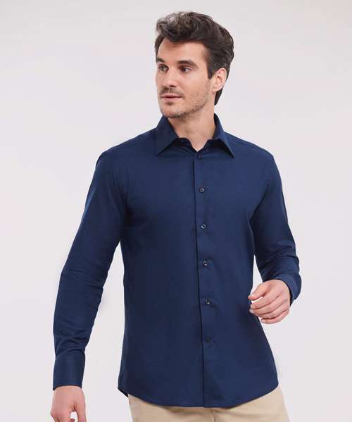 Ultra smart Oxford shirt now has tailored and classic fit options for gents and an elegant tailored fit for ladies, in a high quality Oxford fabric with excellent finish. Contemporary, tailored fit with stiffened semi-cutaway boned collar. Stylish, rounded edge 2 button adjustable cuff, with option for cuff links. Rounded hem.