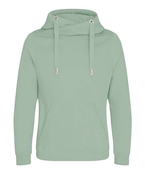 Made with cotton faced fabric which is ideal for decoration, this modern and stylish high necked cross over hooded top features heavy weight fabric to keep you warm on the move.