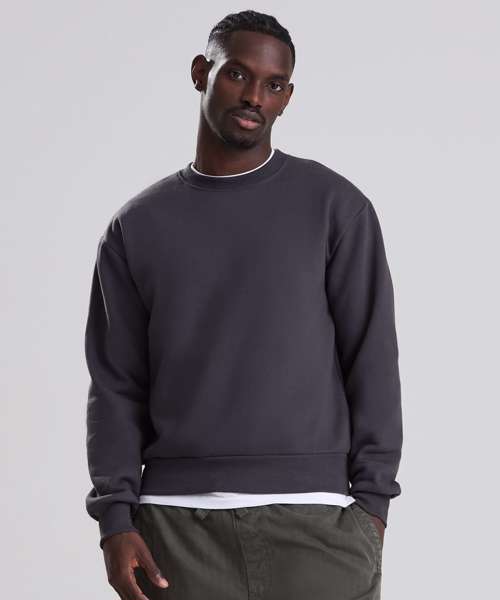 The Vision heavyweight sweat is built to be your blank canvas for print and design. Made with 100% cotton-faced fabric, it offers a smooth surface for bold artwork, featuring a brushed inner fleece. With a relaxed fit and 2x1 ribbed cuffs and hem, plus twin-needle stitching for added durability, this premium sweatshirt balances comfort with a clean finish. Complete with locker patch and size label only, it’s the ideal choice for merch, rebranding and standout designs. Made with recycled polyester.