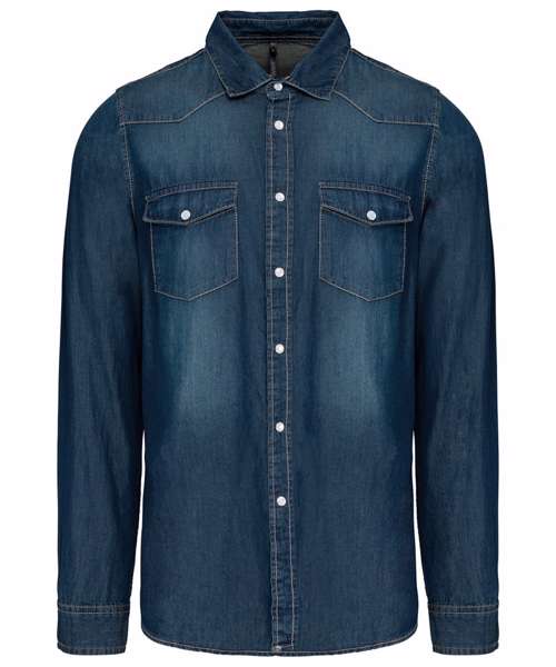 100% cotton. Enzyme-washed shirt. Fitted style. Decorative stud buttons. 2 studded chest pockets with flap. Front and back yokes. Studded cuffs. This product has been specially treated and appears intentionally aged. This manufacturing process results in colour variations between products and makes each piece unique.