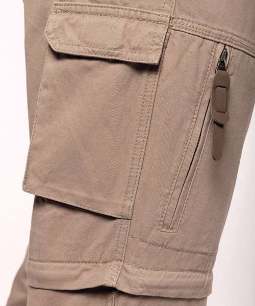 100% cotton twill. Enzyme-washed. Zip fastening with stud. 4 front pockets. 3 rear pockets. Zip off trouser legs to Bermuda shorts. Plastic rings at belt loop. This product has been specially treated and appears intentionally aged. This manufacturing process results in colour variations between products and makes each piece unique. BSCI certified. SEDEX certified.