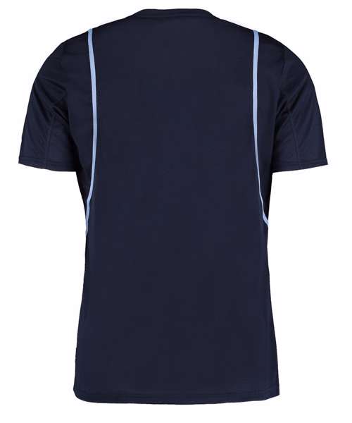 Self fabric neck. Taped shoulder seams. Twin-needle stitching around front neck. Self-coloured inserts to sleeve with self-coloured flat-locking. Contrast binding. Straight hem. Slight dropped hem. Gamegear® adhesive back neck label. Twin-needle hem and cuffs.