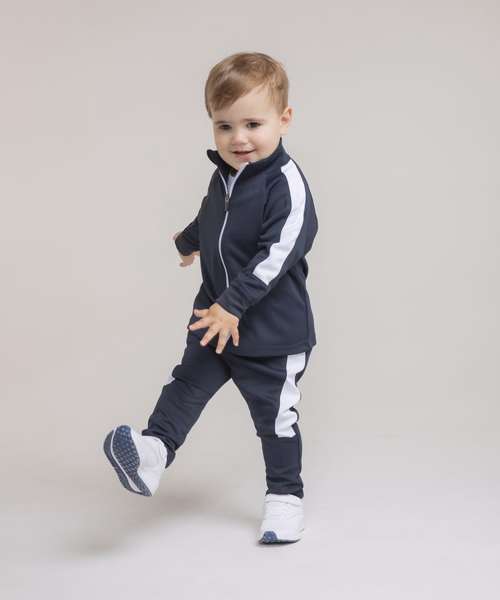 This striking contrast panelled tracksuit combination is enough to make a mini athlete! For leisurewear or sports clubs.