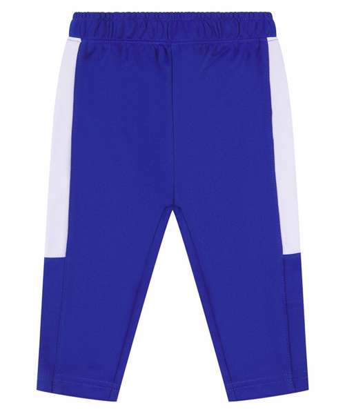 Kids' track bottoms with contrast panels down the outer legs. Elasticated waistband. Plain hem.