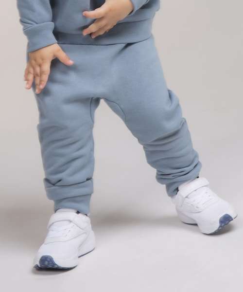 Kids' joggers made in recycled fabric with self-fabric knitted rib at folded waistband and cuffs. Gusset panel. Tag-free.