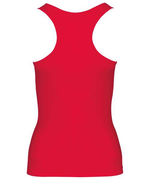 100% Polyester. Quick drying Lightweight fabric. Racer back style. Bound neck and armholes. Twin needle finishing. BSCI certified. Oeko-Tex certified.
