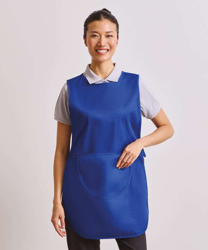 A longer length tabard with a centre front pocket, useful for carrying accessories. This traditional coverall goes over the head and fastens at the side with stud buttons. This tabard offer extra coverage for the wearer with a total length of 78cm.