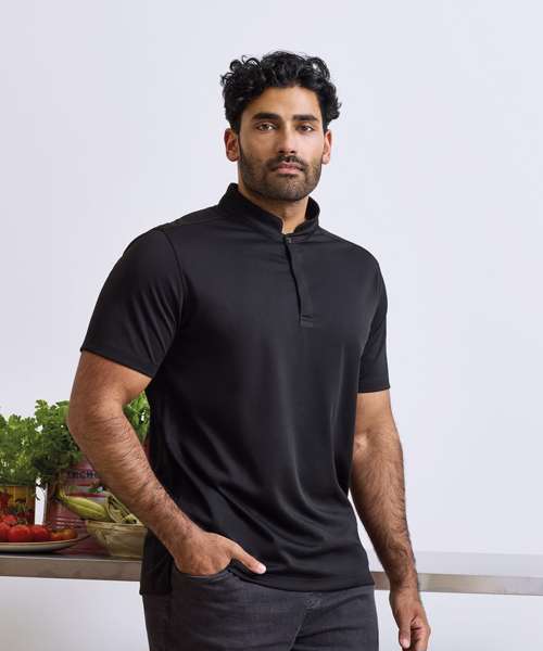 This short sleeve chef’s shirt is made with Premier’s Coolchecker® fabric, guaranteeing a moisture-wicking and breathable performance. Offering value for money, it’s a great solution for those working in the catering and hospitality industries, designed with a press-stud-fastening neckband and a mandarin collar stand, while a covered placket conceals two press stud buttons. To the reverse, there’s a press-stud button tab on the neckband to hold an apron in place and a mesh-back panel to provide airflow through the fabric; and the left sleeve has a useful pen pocket. Side slits in the hemline allow movement through the shirt and provide a pleasing silhouette. Made from 100% certified recycled polyester.