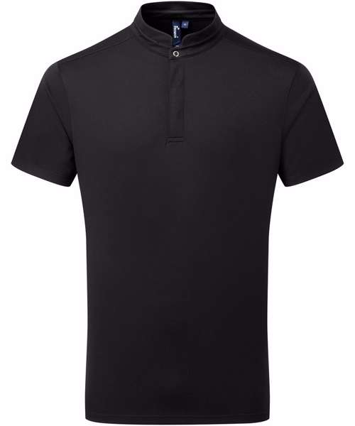 Short sleeve shirt in Premier’s moisture-wicking, breathable Coolchecker® fabric. Mesh back panel provides ventilation and airflow. Banded neckband with single press-stud button. Mandarin collar stand. Covered placket with two press-stud buttons. Press-stud button to the reverse to hold an apron in place on the neckband. Pen pocket on the upper left sleeve. Slide slits on the hemline. Made with 100% certified recycled polyester.