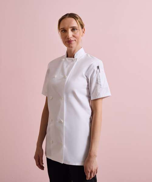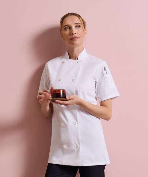 A welcome addition to the existing Premier range of chefs wear, this short sleeved jacket is designed for women. Offering a neater fit around the upper arm, waist and bust areas, this jackets is still comfortable and roomy enough to work in pressurised kitchen environments.