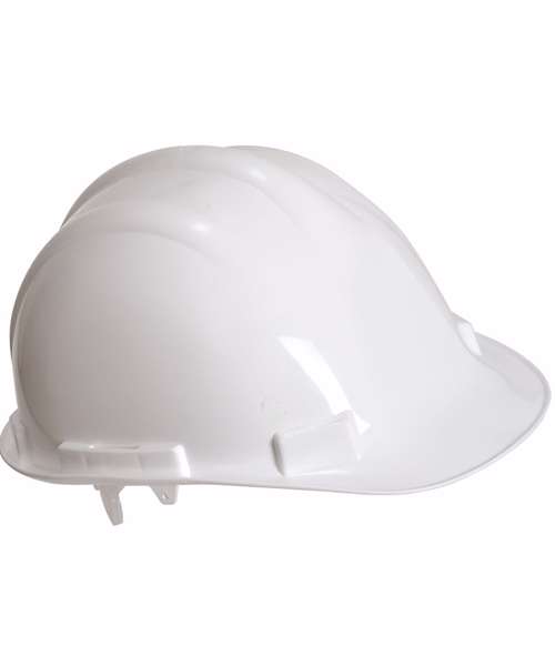 Impact resistant polypropylene shell offers exceptional protection. Suspension harness with adjustable headband provides a snug, secure fit. Angled rain gutter with generous rim. Certified to EN397.