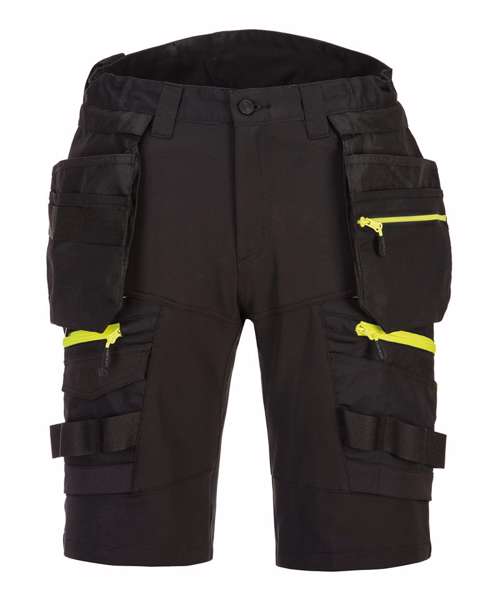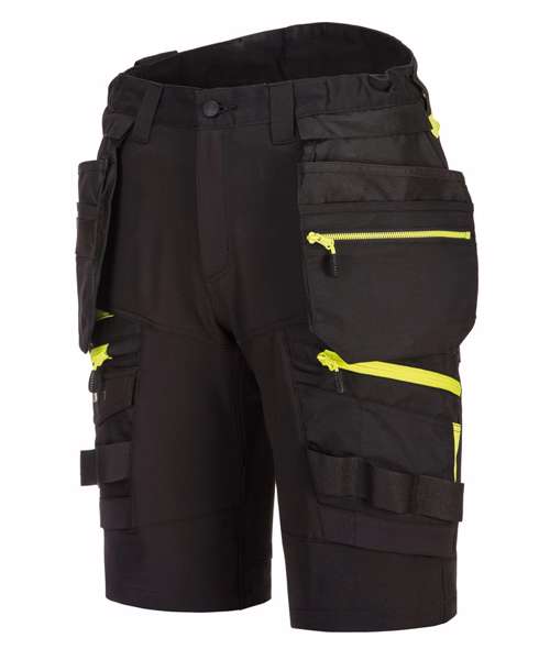DX4 Detachable holster pocket shorts are cleverly designed and use the targeted placement of dynamic 4X stretch fabric to provide maximum range of movement when working. They feature a high-rise back waistband with side elastication, ensuring protection in all working positions, and are triple-stitched throughout, for maximum durability.