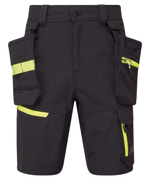 EV4 Lightweight detachable holster shorts are cleverly designed and use the targeted placement of laser holes and stretch fabric to provide maximum range of movement when working. They feature a high-rise back waistband and side elastication, ensuring protection in all working positions. Triple stitching throughout ensures maximum durability.