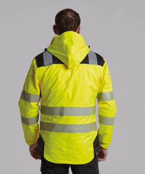 The stylish and functional PW3 Hi-vis winter jacket will ensure you stand out from the crowd. Made from renowned and durable 300D Oxford PU-coated, stain-resistant fabric, it includes many outstanding features, such as the new Insulatex™ heat reflective lining panel which reflects heat into the body, ensuring maximum warmth and comfort. Includes multiple zipped pockets for secure storage. A contemporary design in a modern fit.