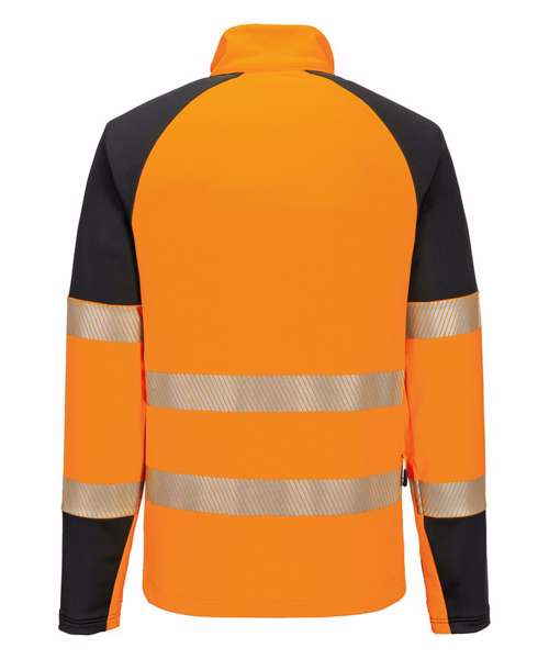Breathable, high-wicking moisture management. Acti-Reach™ innovative one-panel construction that increases arm and torso mobility when reaching, turning or twisting. Quarter-length centre front zip for added comfort and versatility. Thumbhole for secure fit. One zip back pocket. Easy-grip pulls are attached to all zips. Engineered with an active fit. Raglan sleeves for a comfort fit. Chin guard with internal storm flap provides extra comfort. Heat-applied segmented reflective tape for added visibility. One pocket for secure storage. 40+ UPF rated fabric to block 98% of UV rays. Certified to EN ISO 20471 after 25 washes. CE certified.
