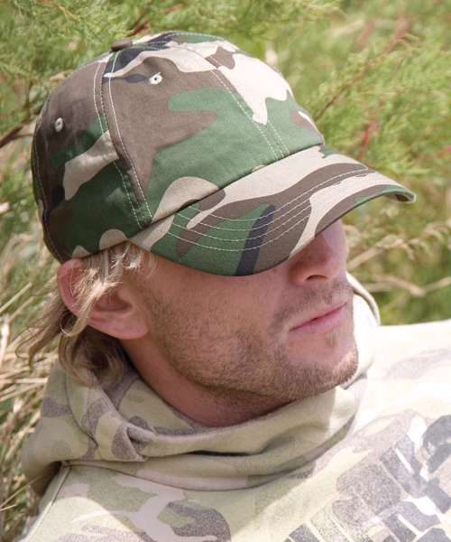 6 panel. Low profile. Unsupported front panels. Pre-curved peak with 4 stitched lines. Stitched eyelets. Fabric size adjuster with antique brass buckle. Decoration Guidelines: Decorating methods: Embroidery & Transfer print Decorators access point: Open.