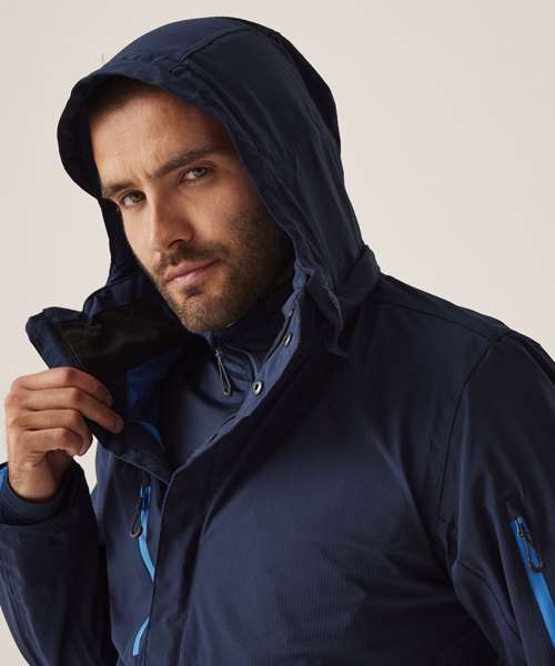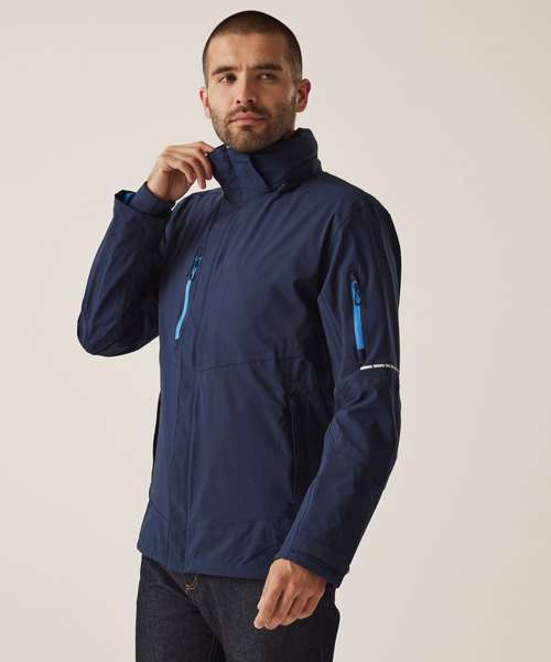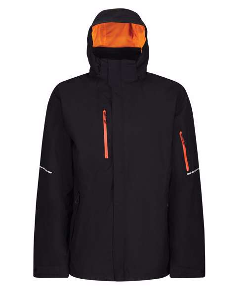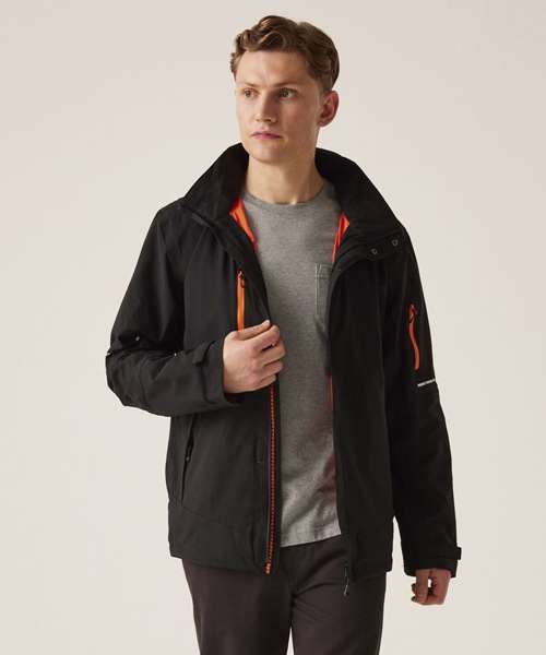 Waterproof and breathable Isotex 10,000 Stretch Ripstop fabric, conforms to EN343 3:2, sealed seams and a DWR (Durable water-repellent) finish for all-weather protection. Thermo-reflect lining panel for heat retention. RFID protection pocket for added security. Packaway hood that conceals away into collar, 2 zipped lower pockets, 1 waterproof zipped sleeve pocket and 1 zipped waterproof chest pocket. Storm flap covered CF zip. Concealed zip in lining for embroidery access, and shock cord adjusters at hem. Reflective details on sleeves and back. .