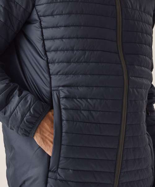 100% Recycled polyester interest face fabric with water-repellent cire finish. Recycled Thermoguard 180gsm insulation, and recycled polyester lining. Stretch binding to cuffs, hood and hem. 2 zipped lower pockets. Easily compressible.