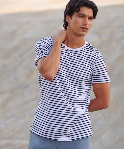 You can't go wrong with stripes. Fun. Impactful. A modern classic. Made with quality striped cotton Jersey, this soft-touch unisex striped T has a regular body fit to suit all shapes. The stretch rib neck and back neck tape ensure a premium finish. The tear-out label can be removed for rebranding.