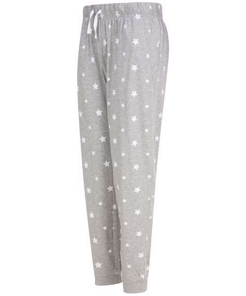 Stretch lounge pants with elasticated waistband and drawcord. Self-fabric cuffed hem with side seam pockets. Tear-out label.