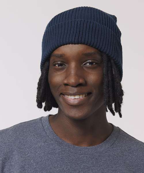 Wide rib beanie which can be turned up with one or two folds. Made of organic cotton. Unisex fit, in a wide range of colours.