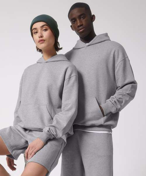 The unisex oversized boxy dry hand-feel hoodie sweatshirt with double-layered hood offers a relaxed feel with stylish details.