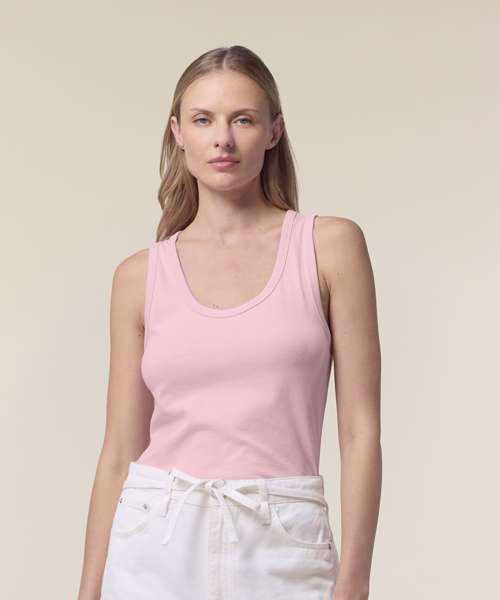 The Stella Ava fitted tank top, for women, is a stylish layering piece made from soft 100% organic cotton. This versatile, eco-friendly garment has a flattering neckline and form-fitting design that makes it ideal as a layering tank top worn under a shirt or light jacket, or as a stand-alone summer staple. Its 180gsm single Jersey fabric is ideal for all kinds of decoration, from screen printing to embroidery; and because it provides full coverage with no transparency, this organic cotton tank top can confidently be worn alone. When it comes to sustainable womenswear that’s designed to be decorated, the Stella Ava tank top delivers the ultimate in quality, comfort and versatility.