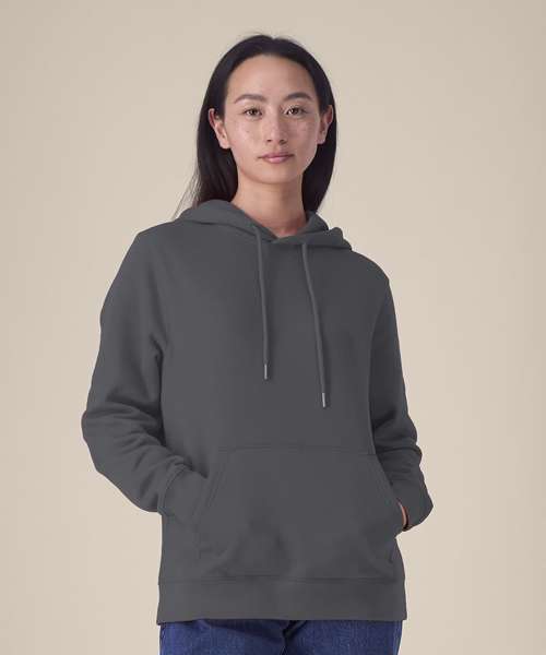 The Stella Gamechanger is a women’s recycled hoodie crafted from a soft recycled cotton blend. With its clean, medium fit, it’s ideal for corporate branding, lifestyle collections and everyday wear. It features a double-layered self-fabric hood, metal-tipped drawcords and embroidered eyelets for a refined finish. Twin-needle topstitching at the cuffs and hem ensures durability, while the kangaroo pocket and herringbone back neck tape offer comfort and practicality. Designed for decoration, this sustainable hoodie provides a smooth surface for print or embroidery in timeless, customisable style.