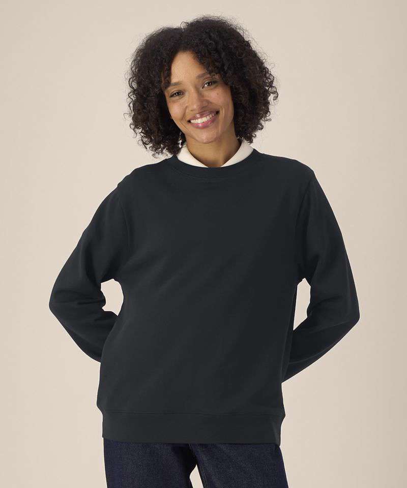 The Stella Thinker is a women’s recycled sweatshirt crafted from a soft recycled cotton blend. With its clean, medium fit and soft hand feel, it offers lasting comfort and everyday versatility. Designed for businesswear, lifestyle and branded collections, it features set-in sleeves and structured 1x1 rib finishes, plus twin-needle topstitching at key seams for shape retention. The herringbone back neck tape and self-fabric half moon add refined interior details. Built for comfort and durability, this sustainable sweatshirt provides a smooth, reliable base for embroidery or print – ideal for corporate branding and sustainable collections.