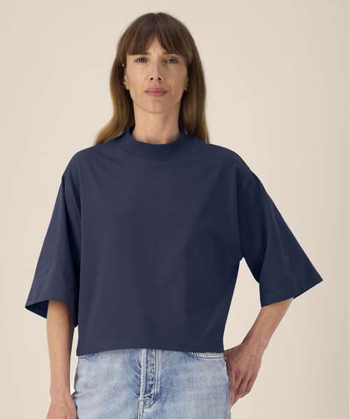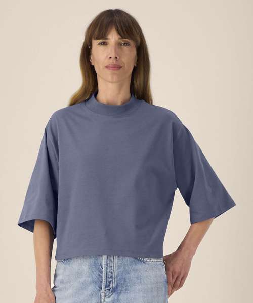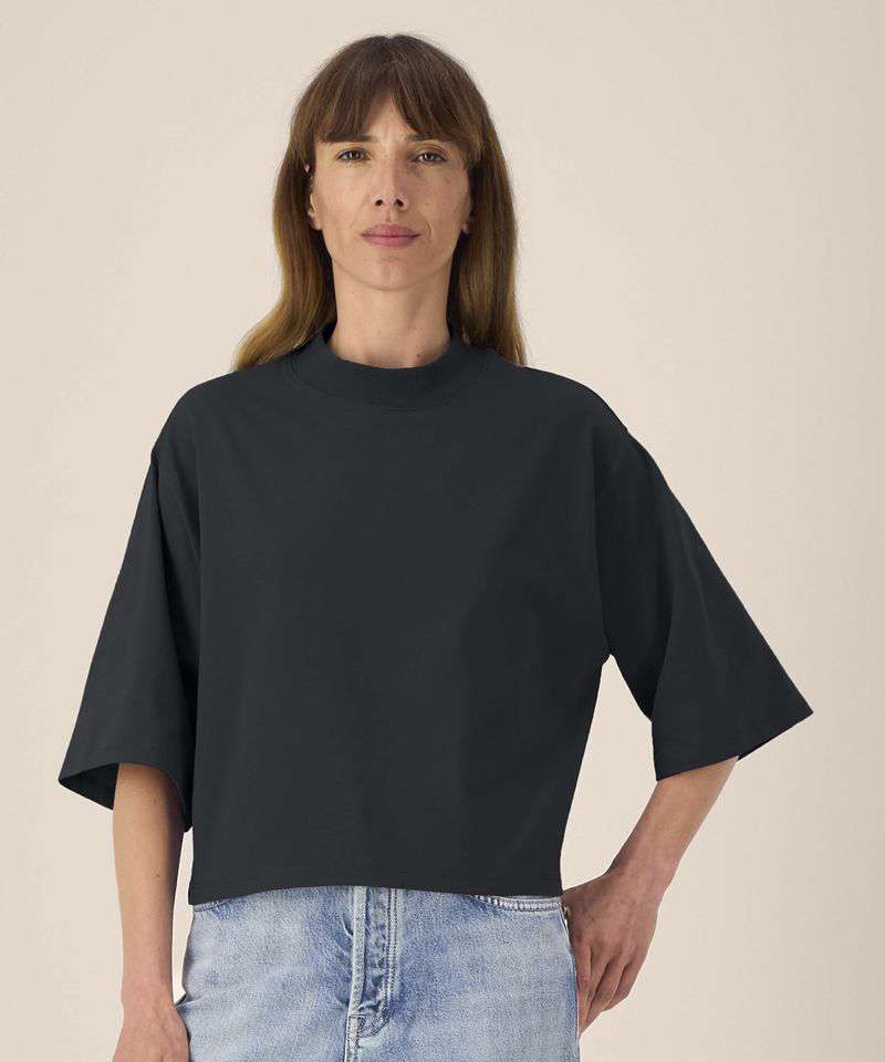 The Stella Raya is a women’s cropped t-shirt made from a soft recycled cotton blend. With its trendy boxy fit, it offers a comfortable feel and structured look. Set-in sleeves and a 1x1 rib collar, plus twin-needle topstitching at the cuffs and hem, ensure durability and shape. Lightweight and breathable, this recycled cotton t-shirt is ideal for fashion-forward collections, lifestyle branding and music merch. Designed for decoration, it provides a smooth surface for standout print or embroidery – a stylish, sustainable choice for bold customisation.