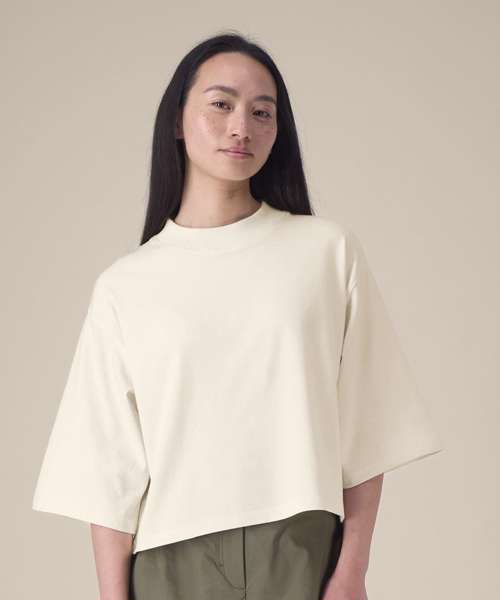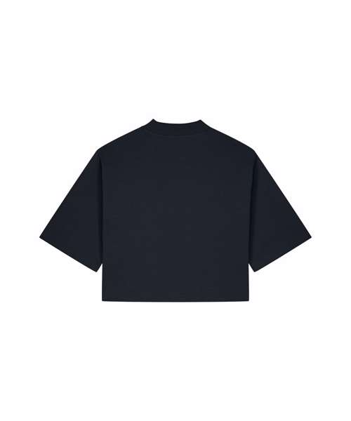 Women’s recycled cotton crop t-shirt. Set-in sleeves. 1x1 rib at neck collar. Self-fabric back neck tape. Twin-needle topstitching at armholes, sleeve cuffs and hem. Contains 50% GRS-certified recycled cotton and 50% OCS-certified organic cotton, certified by Control Union CB-CUC-1393082.