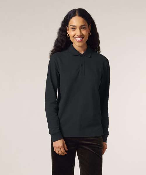 Premium, unisex, long-sleeve polo shirt in 100% organic cotton. Modern, medium fit, 240gsm. Pre-washed for shrink resistance. Excellent printability.